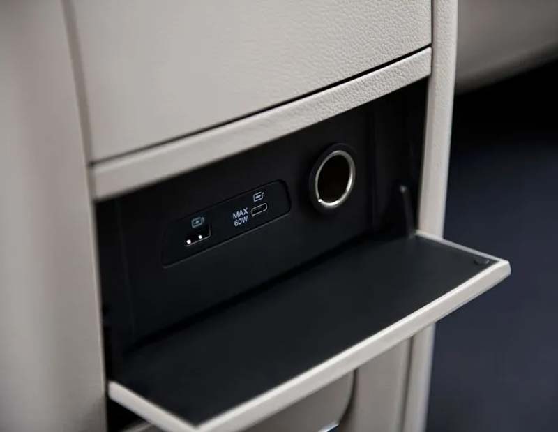 Για τη βέλτιστη συνδεσιμότητα και την παροχή ρεύματος σε όλες τις συσκευές σας, το VOYAH DREAM προσφέρει πολλές αρκετές επιλογές: θύρες USB Type-A (7,5 W) και Type-C (18 W) στην μπροστινή κονσόλα, πρίζα 12V, θύρες USB Type-C (60 W) και Type-A (18 W) στη δεύτερη σειρά καθισμάτων, καθώς και μια παροχή 12V στον χώρο αποσκευών.